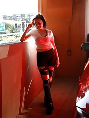 Comet Nox returns with her old cheerleading uniform from high school. She recently repurposed it as a Halloween costume. I can only hope that this is what the zombie apocalypse will look like. We visit her backyard where Comet kills it on the trampoline. She warned me that excessive bouncing has its affect on her bladder. I don't mind. Maybe others will, but maybe they need to get back in touch with nature.