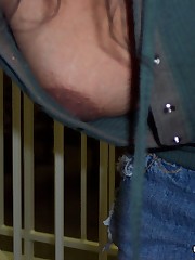 Hot girl flashes pierced nub upskirt