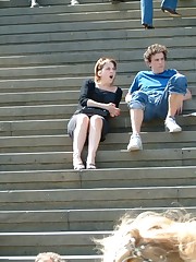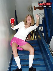 Girlfriend's up skirts, on stairs. Hot upskirt pics