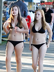 Pubic hair peeping out from stunning girls' bikinis