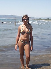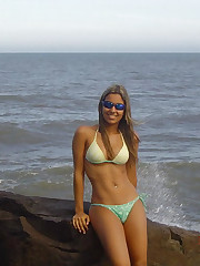 A busty bikini girl undressing on the Coralita