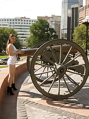 Clara Mabee is a rather attractive European woman who has found herself living in Denver, Colorado. I needed a refill of my herbal supplements, so I decided to make a quick trip to the Mile-High City. Clara's regular job is as a hostess at a sports bar. This was a particularly hot afternoon and she rushing to be at work, but Clara had just enough time to tease my socks off in front of the Colorado State Capitol Building.